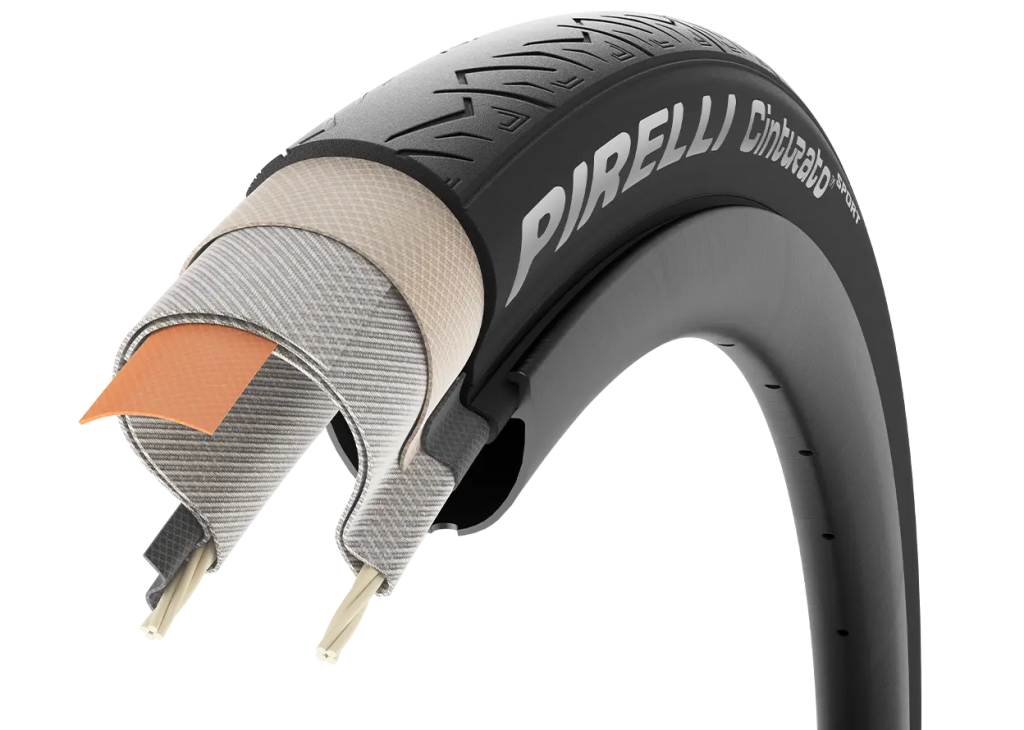 A Pirelli também oferece no mercado nacional o Cinturato Sport, pneu bastante durável e robusto, indicado para pedaladas de longa distância como brevets e cicloviagens ou mesmo treinos em estradas com conservação questionável. Para isso, ele aposta no mesmo composto do P4 Sport, o Pro Compound, porém com a carcaça de 60 TPI TechWall+ Road, que possui diversas camadas de proteção contra furos, sem perder a flexibilidade para manter o conforto e a boa velocidade de rolamento.